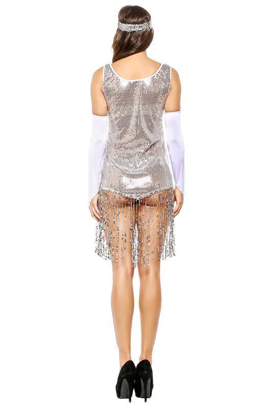 Women Halloween Costume Latin Indian Dance Sequin Tassel Dress