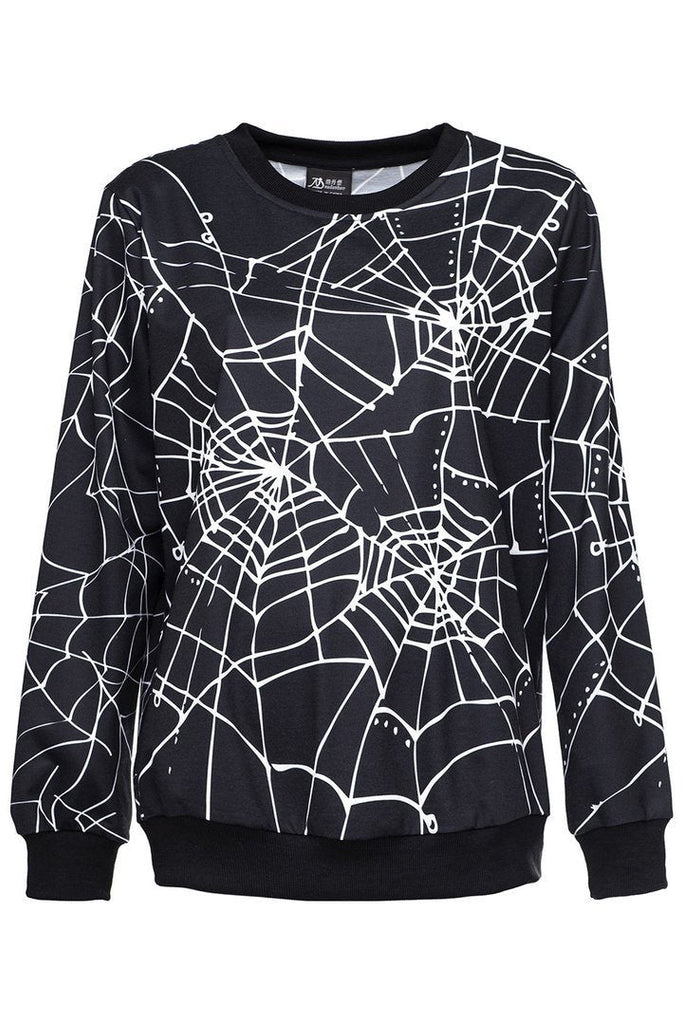 Women Halloween Spider Net Printed Sweater Cosplay Costume