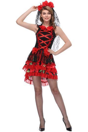 Womens Sexy Black Red Bride Dress Halloween Dress Up Costume
