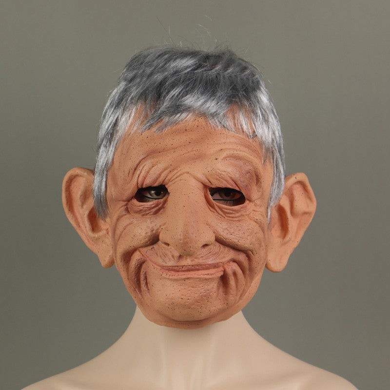 Old Woman Scary Face Cosplay Latex Helmet Halloween Masquerade Props
